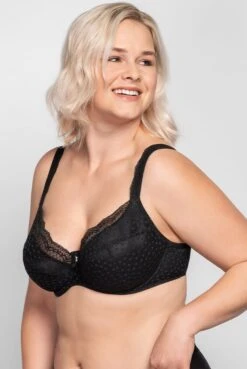 Panty Zoe überzeugt durch zarte Spitze und ergänzt wunderschön den passenden BH der Serie Zoe. Qualitätshersteller Ulla, Wäschespezialist für große Größen, erfreut curvy Ladies mit einem perfekt sitzenden und wunderschön designtem Slip, der den BH und die Serie in Vollendung komplettiert. Panty Zoe besticht durch eine wunderschöne Optik in perfekter Harmonie mit dem besonders komfortablen Schnitt.