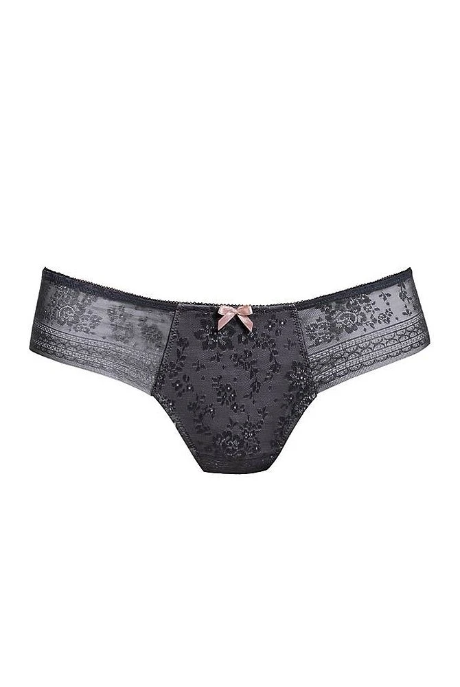 Passend zu den BHs der Anita-Serie „Fleur“, ist der String im Vorderteil aus Allover-Spitze und mit Mikrofaser-Charmeuse unterlegt. Ein Blickfang ist die komplett aus transparenter Spitze verarbeitete Rückseite.