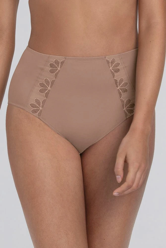 Der Taillenslip Sophia ergänzt perfekt die BHs der Serie oder andere gleichfarbige BHs. Die weiche elastische Qualität schmiegt sich weich an Ihre Haut. Die dekorative Blumenstickerei des BHs wird im Vorderteil aufgegriffen und schließt zur Taille mit einem feinen Elastikband ab. Rundum aus weicher, elastischer Stretch Ware trägt sich der Slip leicht und angenehm. Der Beinabschluss ist moderat. Der Bund ist taillenhoch geschnitten.